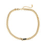 Ihr charakteristisches Highlight – das schwarze, glänzende Element – setzt einen klaren Kontrast und macht die Kette zu einem Statement-Piece, das dennoch zeitlos und vielseitig bleibt.